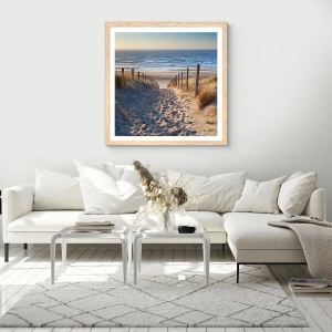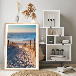 Poster in einem Rahmen aus heller Eiche - Das Rauschen des Meeres, der Gesang der Vögel, ein wilder Strand im Gras ... - 70x50 cm