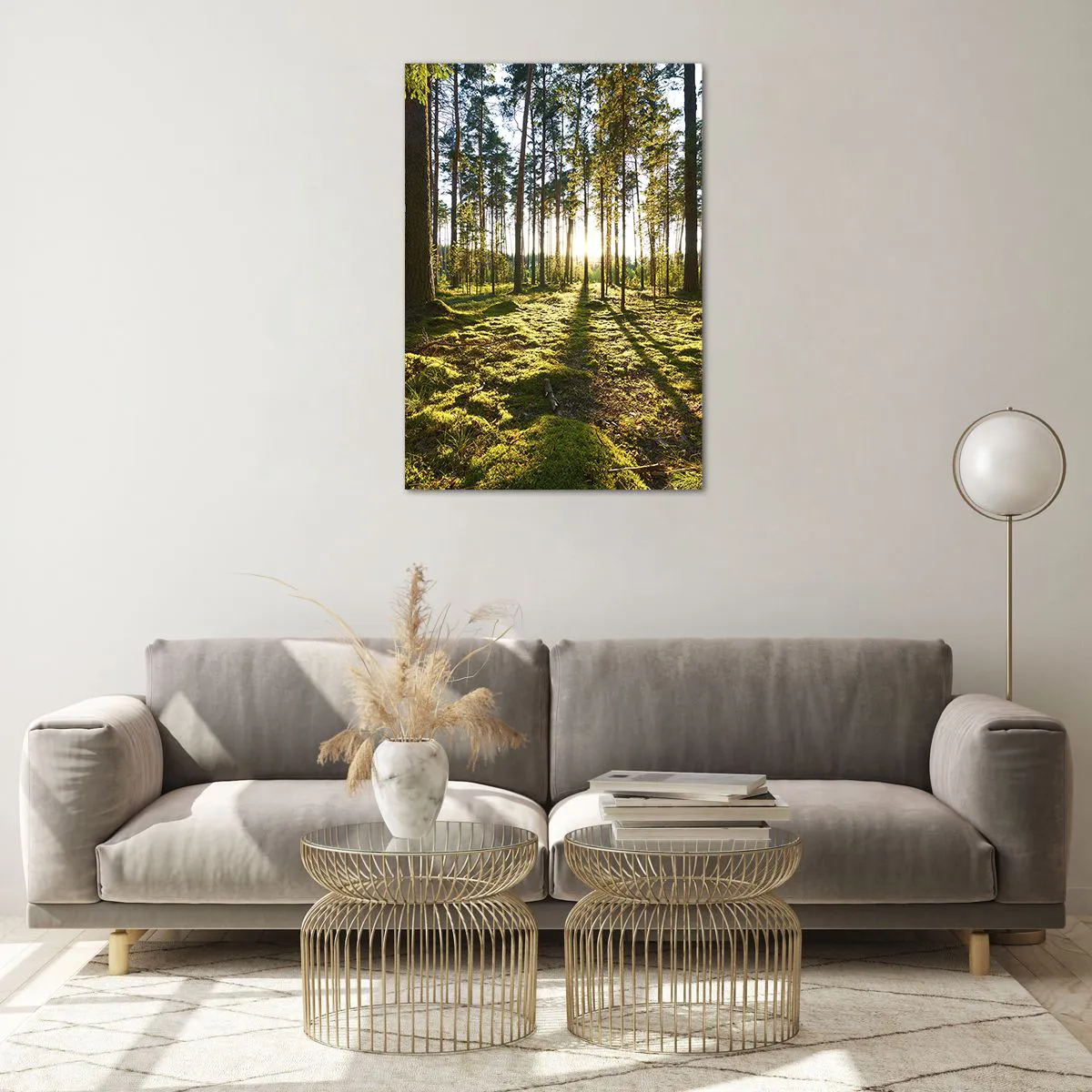 Glasbild - Bild auf glas - Grüner Wald, beleuchtet durch Sonnenlicht auf dem Moos - 70x100cm - … Hinter den sieben Wäldern - Moderne Wanddekoration für Wohnzimmer und Schlafzimmer ARTTOR