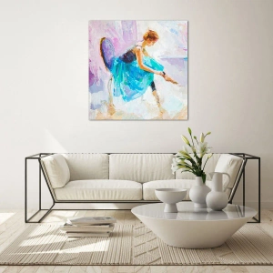 Glasbild - Bild auf glas - Eine Ballerina in einem blauen Kleid vor einem impressionistischen Hintergrund - 120x80cm - Unbeschreibliche Anmut, subtiler Charme - Moderne Wanddekoration für Wohnzimmer und Schlafzimmer ARTTOR