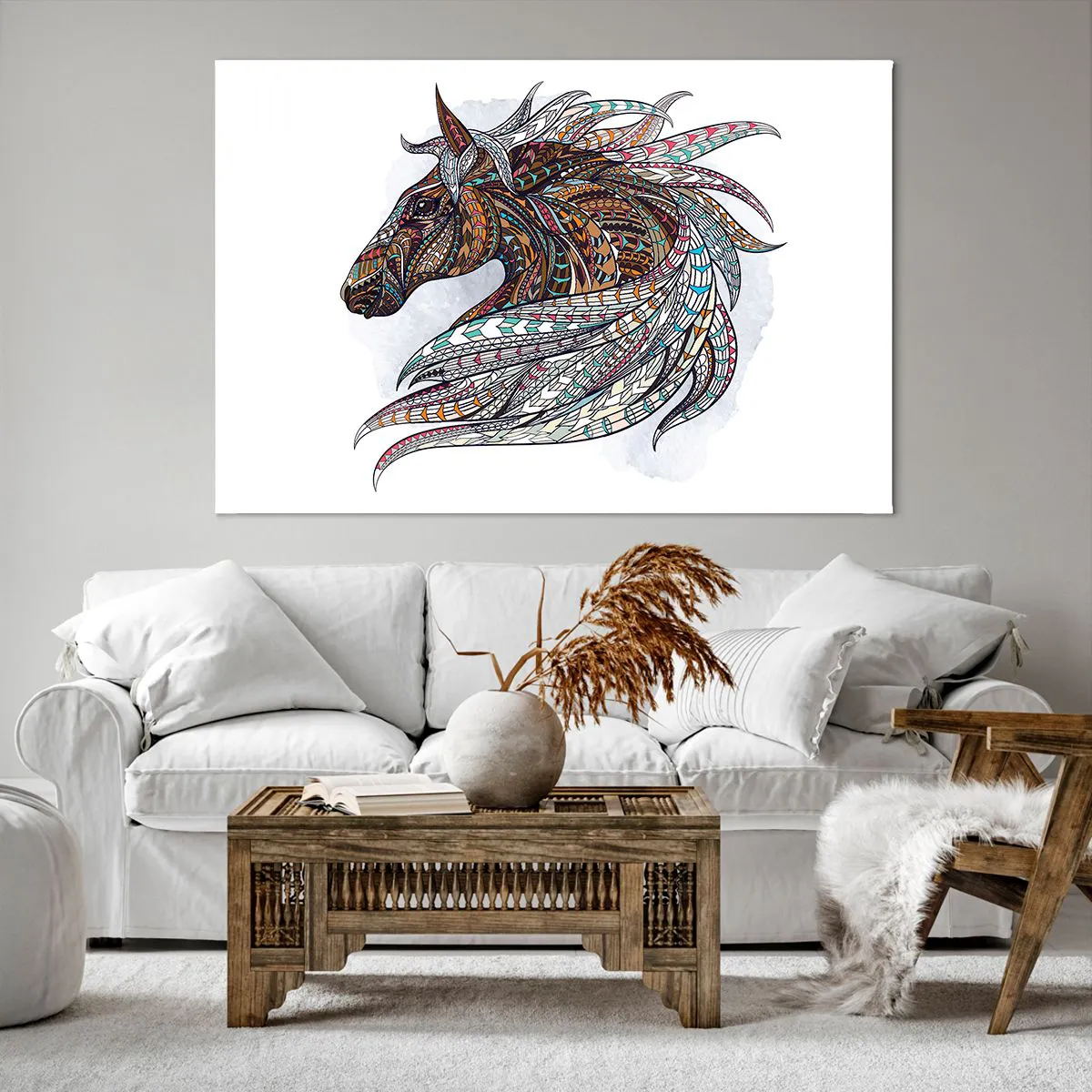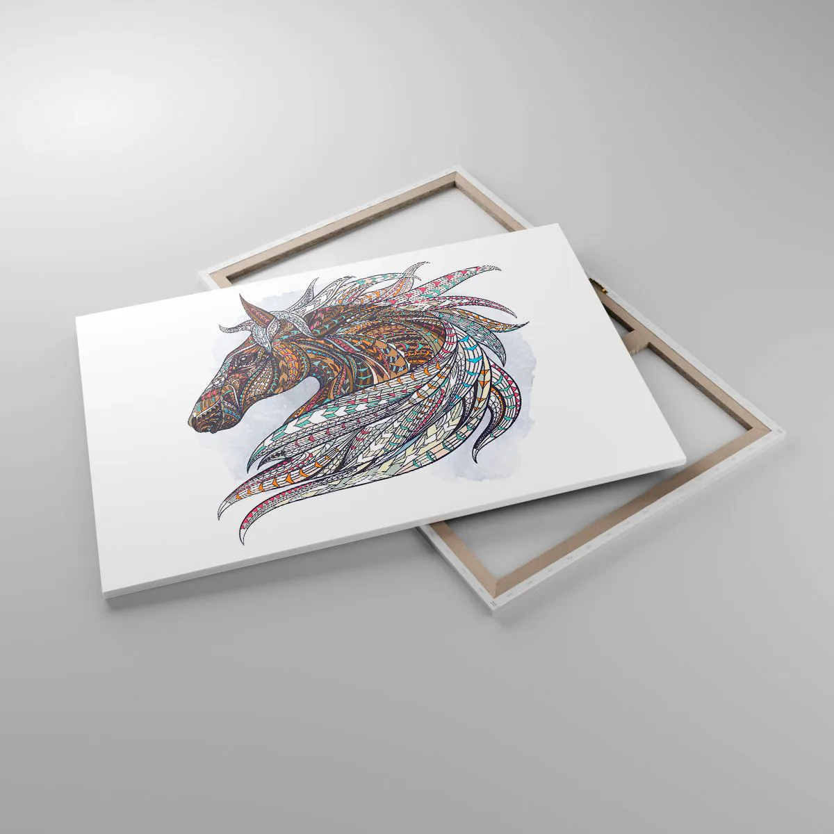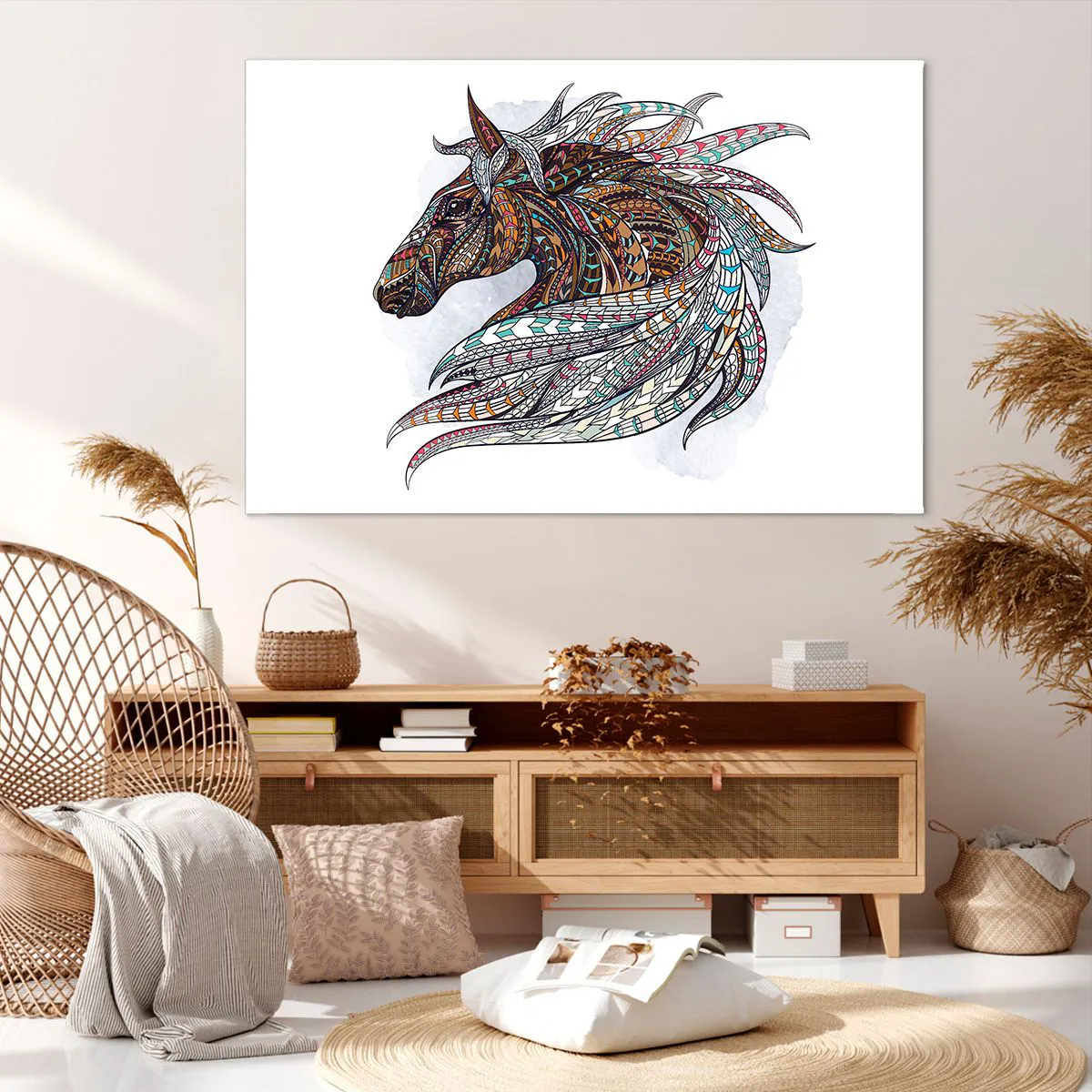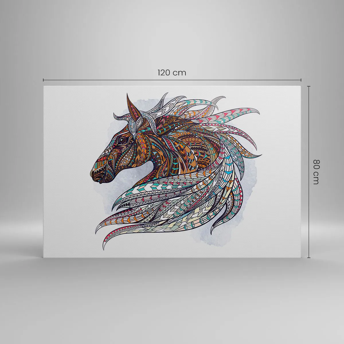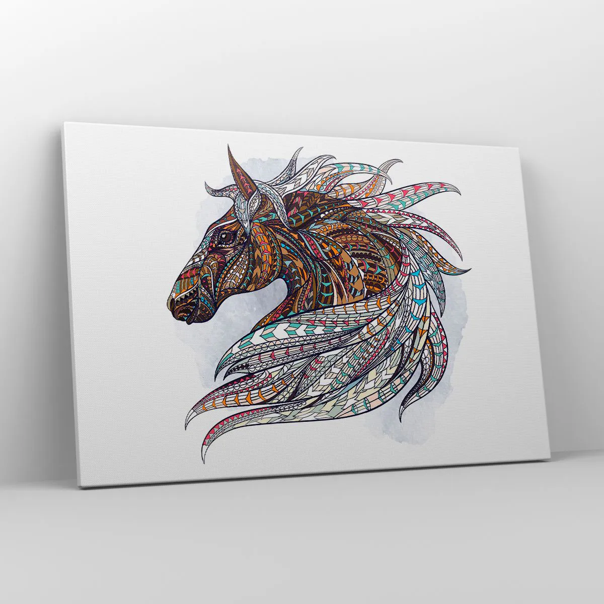 Bild auf Leinwand - Leinwandbild - Ein geometrisches Pferd mit einer farbenfrohen, detaillierten Mähne - 120x80cm - Keltisches Kriegsross - Moderne Wanddekoration für Wohnzimmer und Schlafzimmer ARTTOR