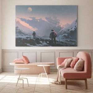 Außergewöhnliche Details und gedämpfte, himmlische Farben schaffen eine Atmosphäre, die Sie einlädt, das Unbekannte zu entdecken. Das Motiv der Weltraumerkundung unterstreicht perfekt den fantastischen Charakter des Gemäldes, weckt die Fantasie und inspiriert.