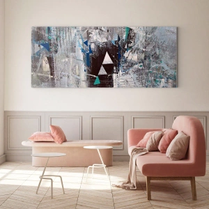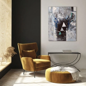 Glasbild - Bild auf glas - Geometrische Dreiecke vor dem Hintergrund einer abstrakten Komposition in Grautönen. - 50x70cm - Überschreibende Reihenfolge der Dreiecke - Moderne Wanddekoration für Wohnzimmer und Schlafzimmer ARTTOR
