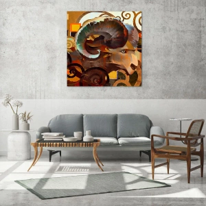 Glasbild - Bild auf glas - Ein künstlerisches Bild eines Widders in einer geometrischen und spiralförmigen Komposition. - 50x70cm - Magie - Religionen - Rituale - Moderne Wanddekoration für Wohnzimmer und Schlafzimmer ARTTOR