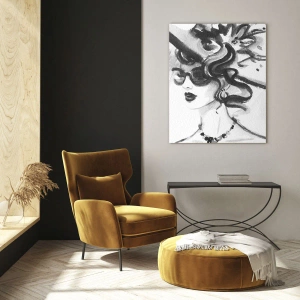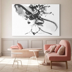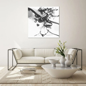 Glasbild - Bild auf glas - Schwarz-Weiß-Porträt einer Frau mit Hut - 50x70cm - Eine Dame mit Charakter - Moderne Wanddekoration für Wohnzimmer und Schlafzimmer ARTTOR