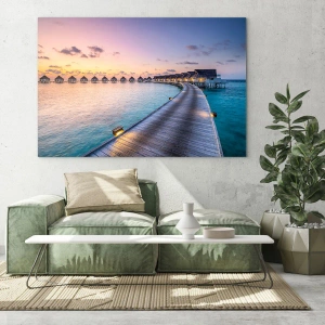 Dieser Druck mit einem Steg und Wasserhäusern ist perfekt für Liebhaber tropischer Reisen und alle, die die Atmosphäre exotischer Orte in ihr Zuhause bringen möchten. Es ist eine Dekoration, die nicht nur schmückt, sondern auch zum Träumen und Planen weiterer Urlaubsabenteuer anregt. Warme Farben und eine harmonische Komposition bringen positive Energie und Harmonie in jeden Raum.