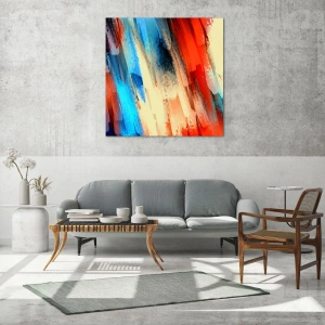 Glasbild - Bild auf glas - Abstrakter Pinselstrich in Blau- und Orangetönen - 70x100cm - Eine Kaskade von Farben - Moderne Wanddekoration für Wohnzimmer und Schlafzimmer ARTTOR