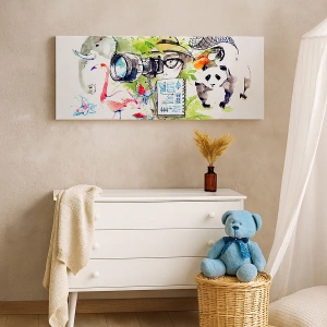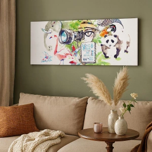 Bild auf Leinwand - Leinwandbild - Bunte Grafiken mit Natur- und Safari-Themen - 70x50cm - In der Linse eines Reisenden - Moderne Wanddekoration für Wohnzimmer und Schlafzimmer ARTTOR