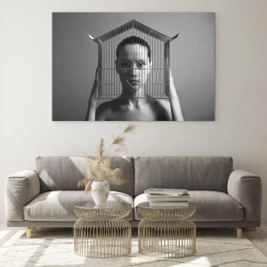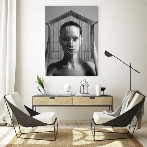 Glasbild - Bild auf glas - Frau hinter einem Käfig im surrealen Stil - 120x50cm - Ein leicht surreales Portrait - Moderne Wanddekoration für Wohnzimmer und Schlafzimmer ARTTOR