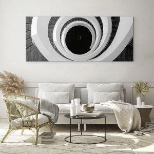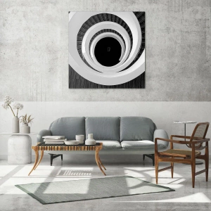Glasbild - Bild auf glas - Schwarz-weiße Wendeltreppe von oben - 70x50cm - Zum Kern der Sache - Moderne Wanddekoration für Wohnzimmer und Schlafzimmer ARTTOR