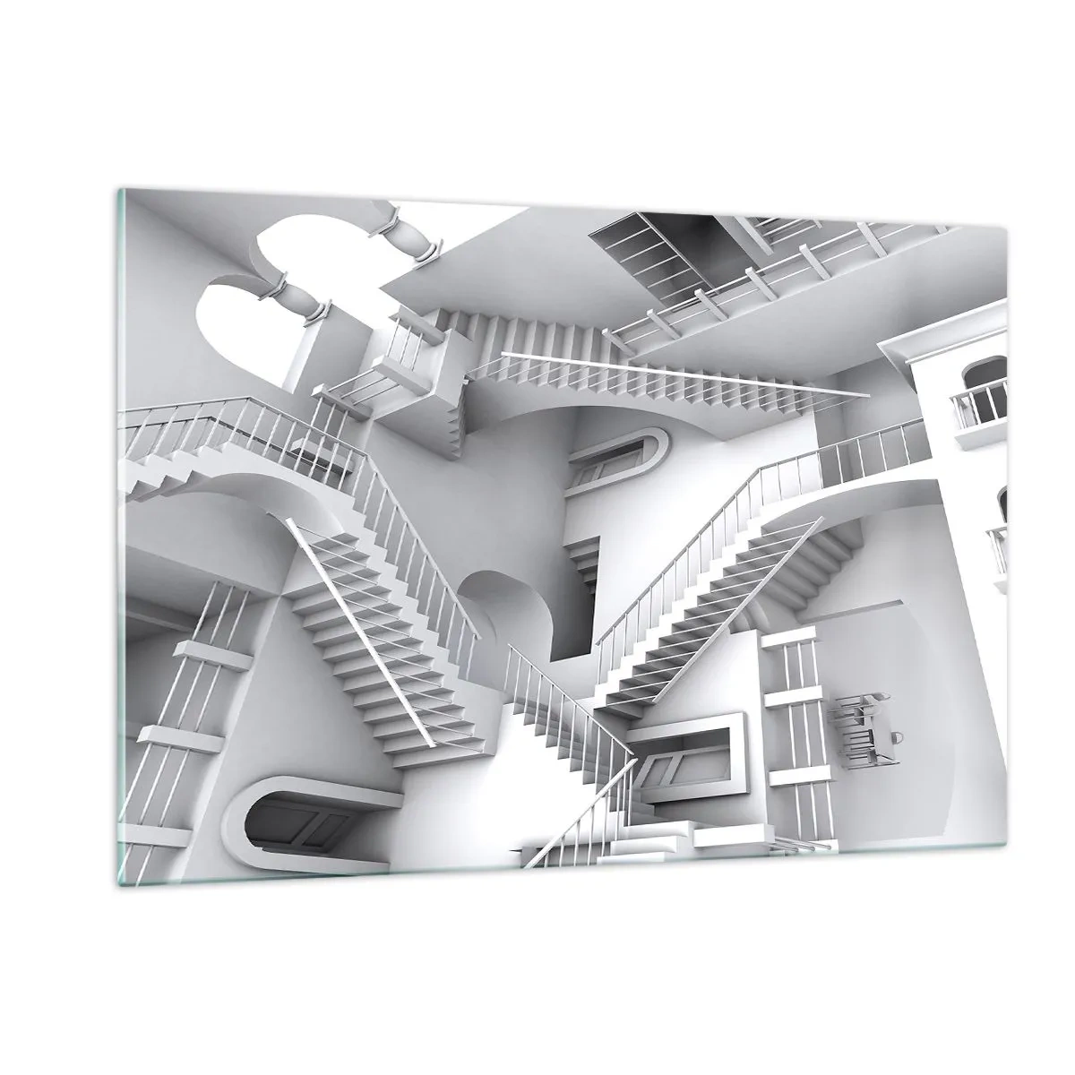 Glasbild - Bild auf glas - Ein Treppenlabyrinth in einem surrealen Raum - 120x80cm - Die Paradoxien des Weltraums - Moderne Wanddekoration für Wohnzimmer und Schlafzimmer ARTTOR