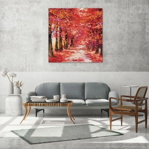 Glasbild - Bild auf glas - Eine malerische Gasse in herbstlichen Farben voller warmer Farbtöne - 120x80cm - Herbstlicher Eindruck - Moderne Wanddekoration für Wohnzimmer und Schlafzimmer ARTTOR