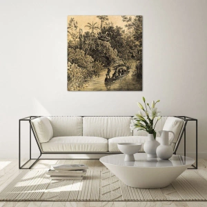 Glasbild - Bild auf glas - Retro-Druck, der eine Reise durch den Dschungel darstellt - 50x70cm - Expedition zur Quelle - Moderne Wanddekoration für Wohnzimmer und Schlafzimmer ARTTOR