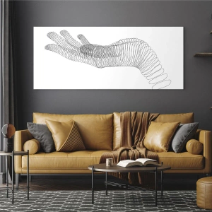 Glasbild - Bild auf glas - Minimalistische Grafik einer Hand aus Punkten - 70x50cm - Federnde Hand - Moderne Wanddekoration für Wohnzimmer und Schlafzimmer ARTTOR
