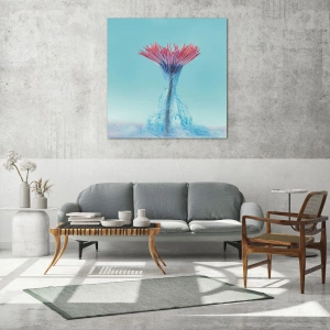 Glasbild - Bild auf glas - Eine phantasievolle Blume, eingetaucht in einen blauen und rosa Dunst - 120x80cm - In einer belebenden Umarmung - Moderne Wanddekoration für Wohnzimmer und Schlafzimmer ARTTOR