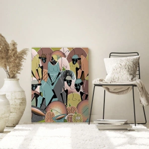 Glasbild - Bild auf glas - Eine abstrakte Illustration von Figuren in Beige-, Grün- und Rosatönen. - 50x70cm - Ein toller Urlaub steht bevor - Moderne Wanddekoration für Wohnzimmer und Schlafzimmer ARTTOR