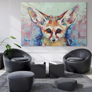 Glasbild - Bild auf glas - Ein farbenfrohes Porträt eines Fenneks im Stil der expressiven Malerei. - 70x100cm - Bist du bereit für mich? - Moderne Wanddekoration für Wohnzimmer und Schlafzimmer ARTTOR