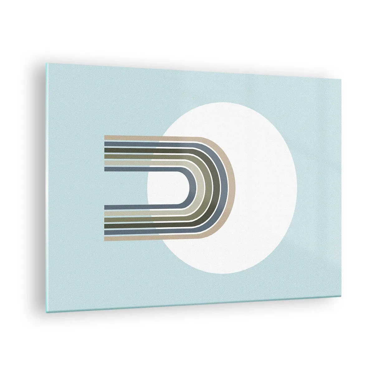 Glasbild - Bild auf glas - Eine abstrakte Komposition mit Bögen in zarten Blau- und Grüntönen. - 70x50cm - Unwiderstehliche Anziehungskraft - Moderne Wanddekoration für Wohnzimmer und Schlafzimmer ARTTOR