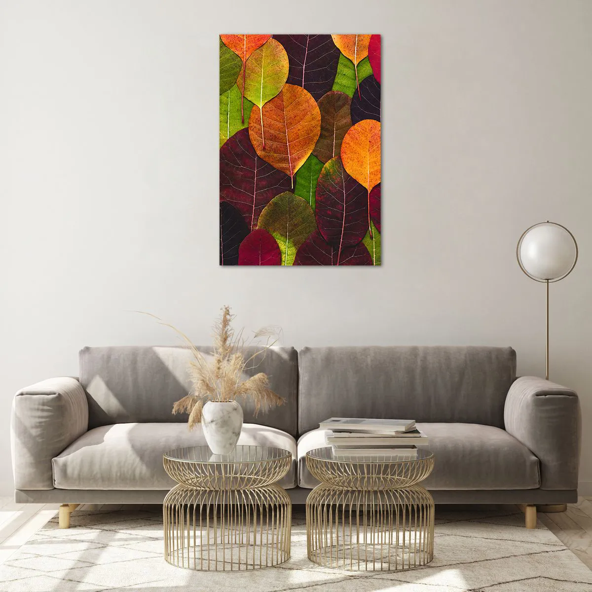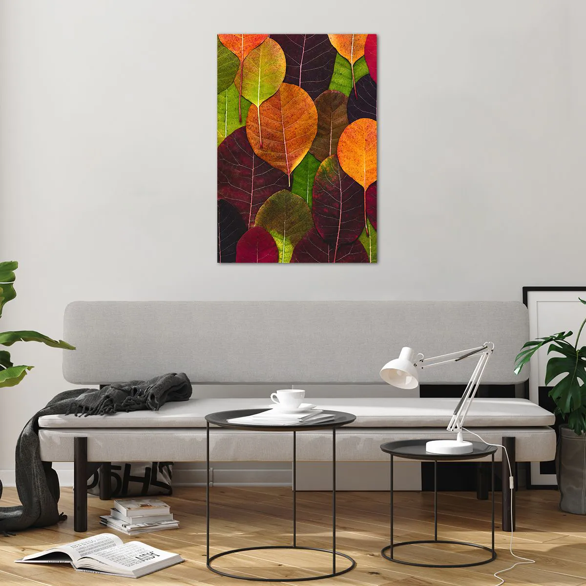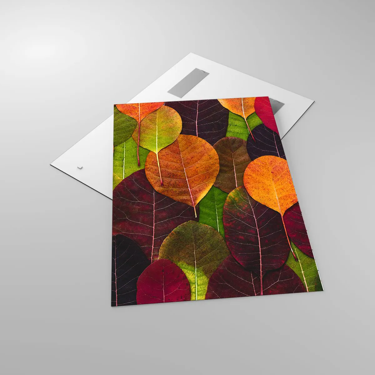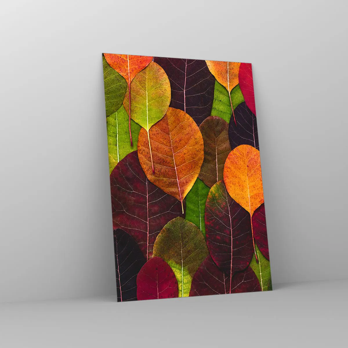 Glasbild - Bild auf glas - Bunte Blätter in einem herbstlichen Muster angeordnet - 70x100cm - Herbstmosaik - Moderne Wanddekoration für Wohnzimmer und Schlafzimmer ARTTOR