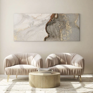 Glasbild - Bild auf glas - Abstrakte Komposition mit Beige, Gold und Graphit - 120x80cm - An der Grenze der Farben - Moderne Wanddekoration für Wohnzimmer und Schlafzimmer ARTTOR