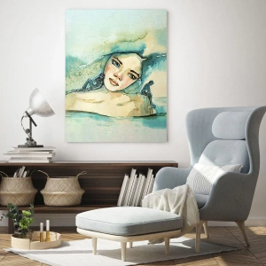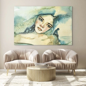 Glasbild - Bild auf glas - Aquarell eines Frauengesichts mit reflektierendem Motiv - 160x50cm - Bin ich blau? - Moderne Wanddekoration für Wohnzimmer und Schlafzimmer ARTTOR