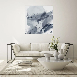 Glasbild - Bild auf glas - Abstrakte Flecken in Blautönen auf hellem Hintergrund - 80x120cm - Eine Studie über die Natur des Wassers - Moderne Wanddekoration für Wohnzimmer und Schlafzimmer ARTTOR