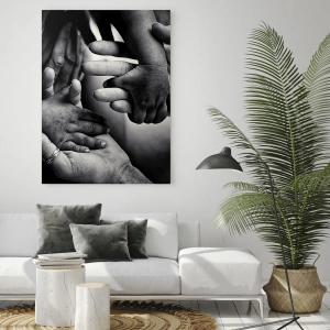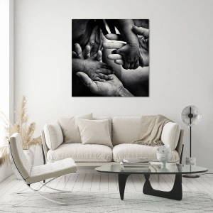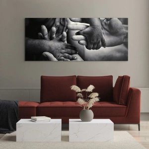 Glasbild - Bild auf glas - Schwarze und weiße Hände verschiedener Generationen - 140x50cm - Mensch sein - Moderne Wanddekoration für Wohnzimmer und Schlafzimmer ARTTOR