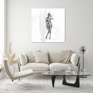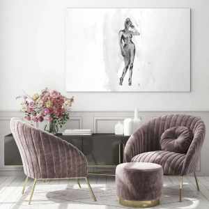 Glasbild - Bild auf glas - Skizze einer Frauensilhouette in Grautönen - 70x100cm - Eine Studie über das Ideal der Weiblichkeit - Moderne Wanddekoration für Wohnzimmer und Schlafzimmer ARTTOR