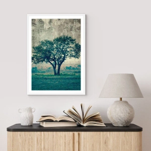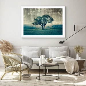 Poster in einem weißen Rahmen - Ein Apfelbaum auf blauem Feld? - 60x60 cm