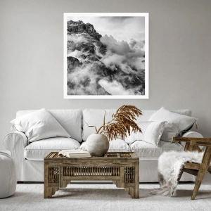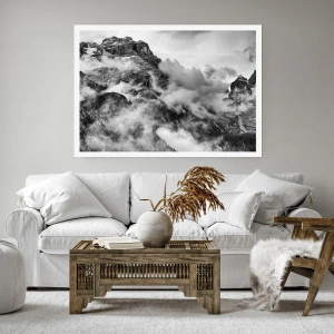 Poster - Schwarz-Weiß-Ansicht der von Wolken umgebenen Berge - 100x70cm - Schön und grausam - Moderne Wanddekoration für Wohnzimmer und Schlafzimmer ARTTOR