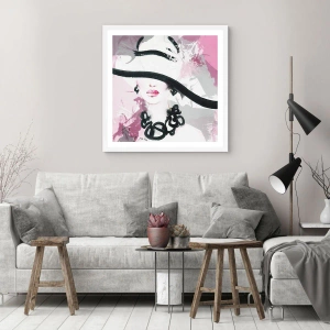 Poster in einem weißen Rahmen - Bildnis einer Dame in Schwarz und Pink - 91x61 cm