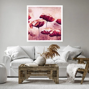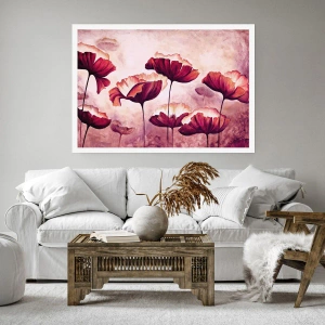 Poster - Blumen in Rot- und Weißtönen auf dezentem Hintergrund - 100x70cm - Rotes und weißes Blütenblatt - Moderne Wanddekoration für Wohnzimmer und Schlafzimmer ARTTOR