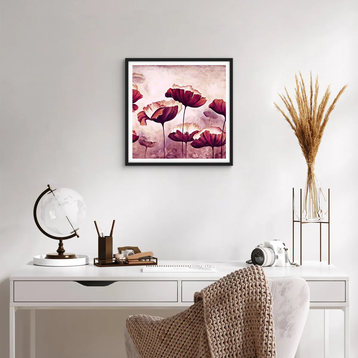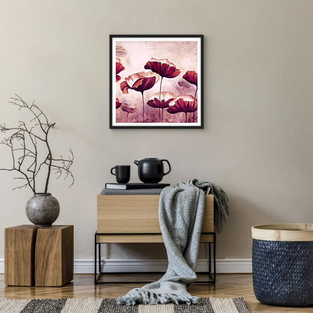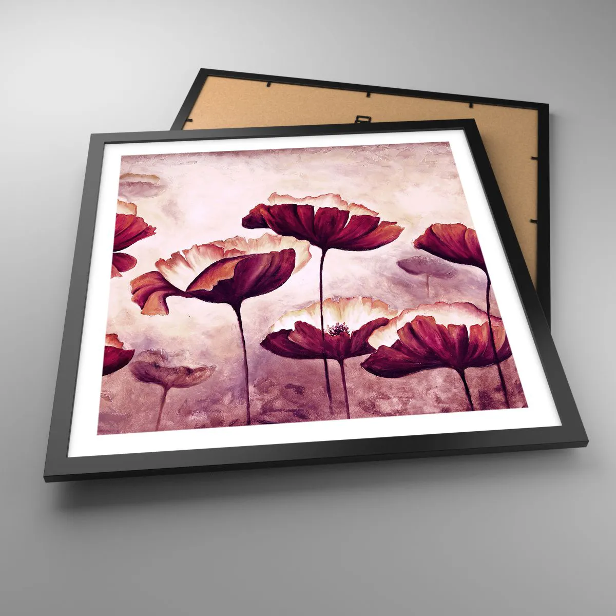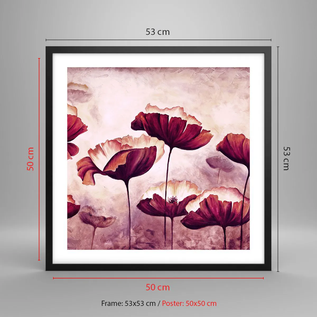 Poster in einem schwarzem Rahmen - Rotes und weißes Blütenblatt - 50x50 cm