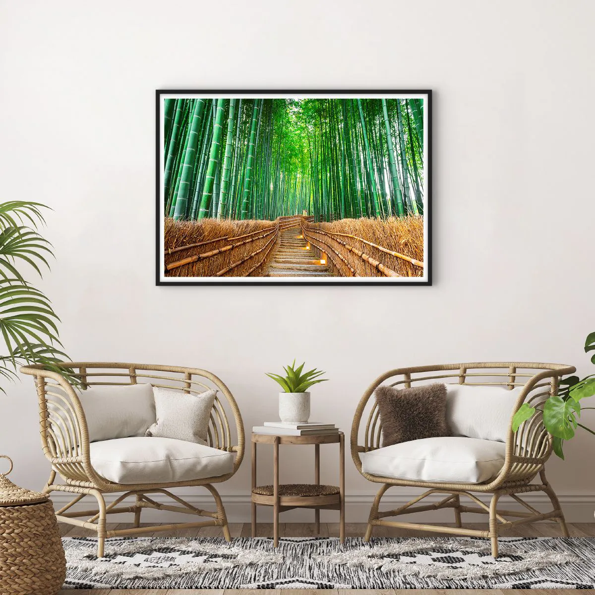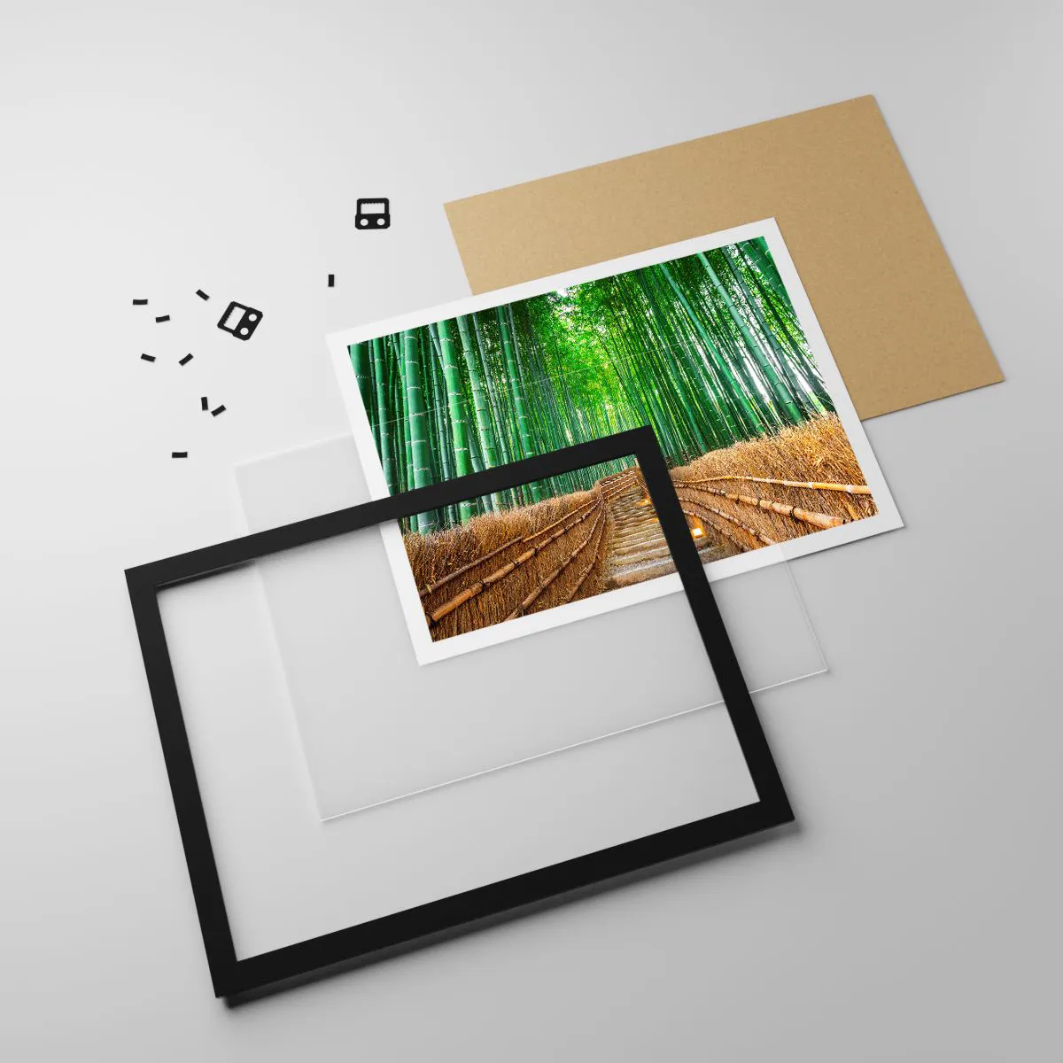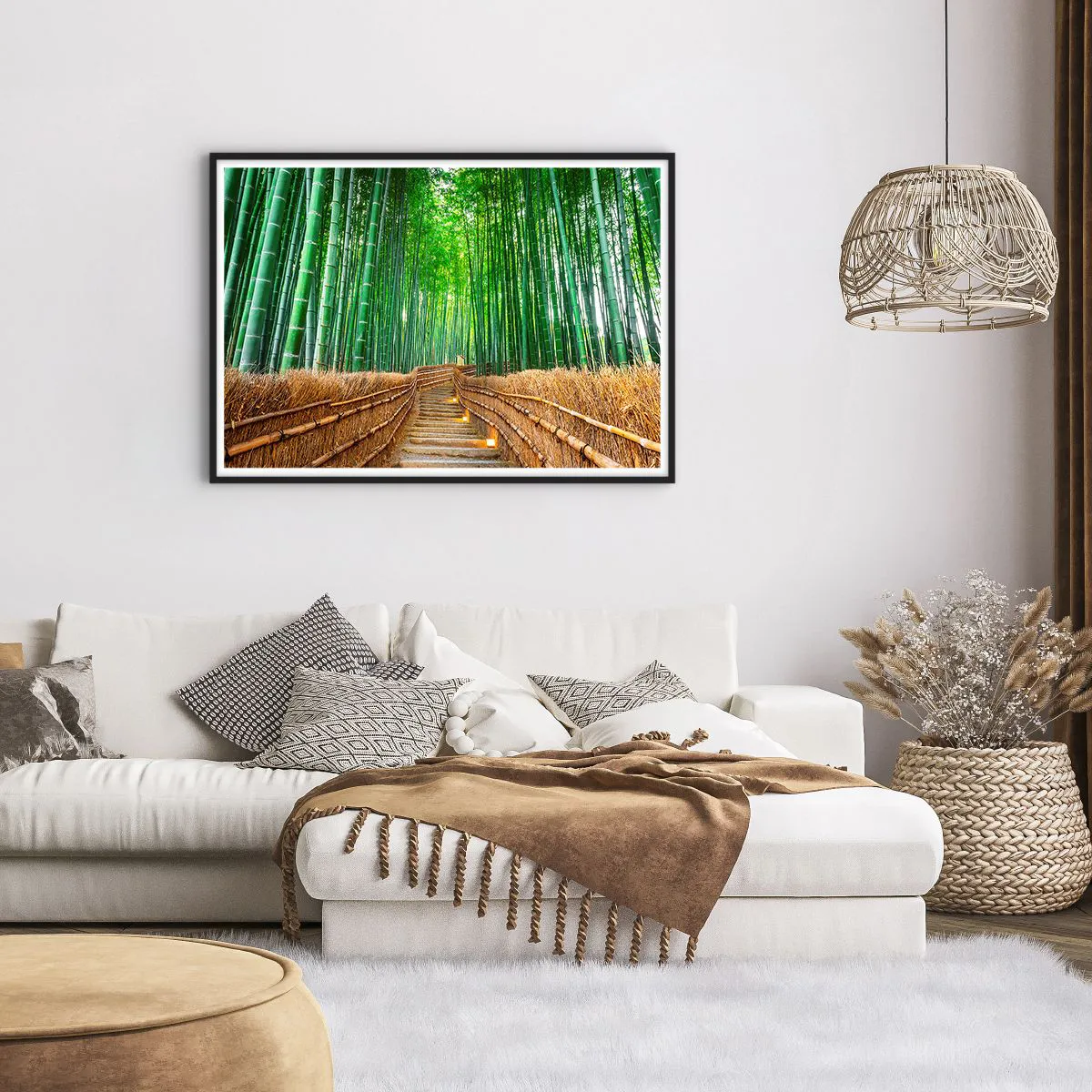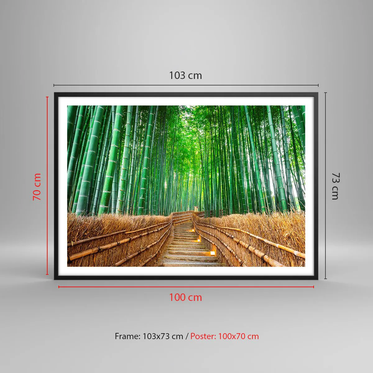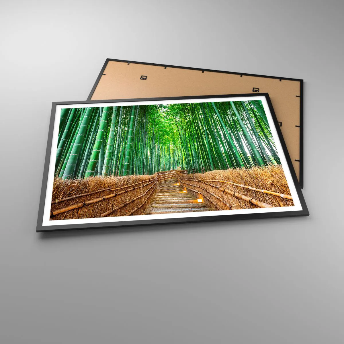 Poster in einem schwarzem Rahmen - Ein Pfad in einem dichten Bambuswald - 100x70cm - Die Essenz der asiatischen Natur - Moderne Wanddekoration für Wohnzimmer und Schlafzimmer ARTTOR