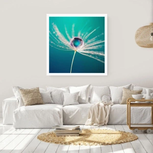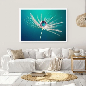 Poster - Makrofotografie eines Wassertropfens auf einem Löwenzahn - 50x70cm - Mystischer Moment - Moderne Wanddekoration für Wohnzimmer und Schlafzimmer ARTTOR