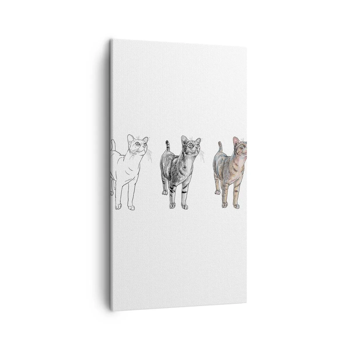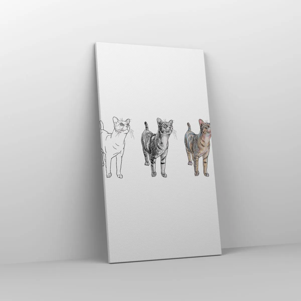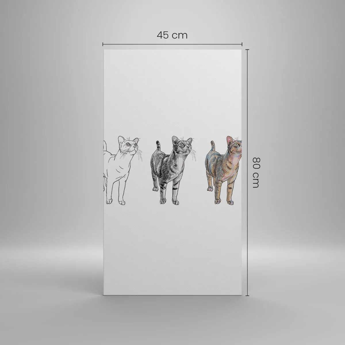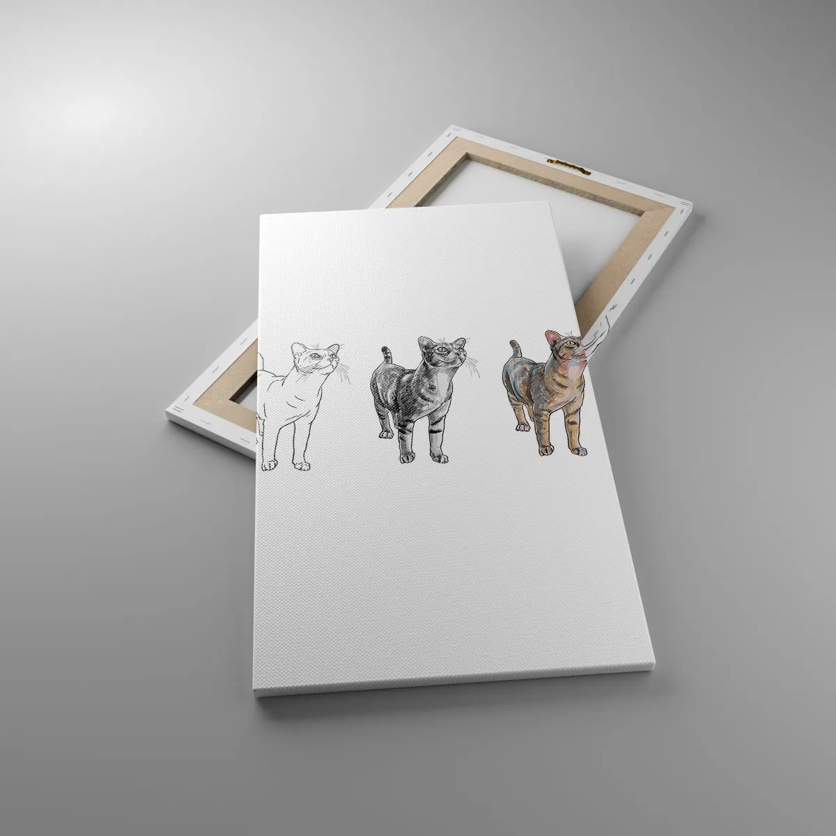 Die Leinwand wird über den Rahmen gespannt. Die Seiten und Kanten werden gedruckt, um das Bild fortzusetzen. Das Bild ist fertig zum Aufhängen an der Wand. Jedes Produkt hat einen am Rahmen befestigten Anhänger und ein Montageset (Schraube + Stift).