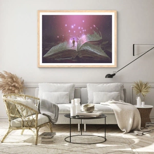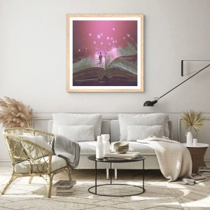 Poster in einem Rahmen aus heller Eiche - Einladung in eine andere Welt - lesen Sie! - 30x30 cm