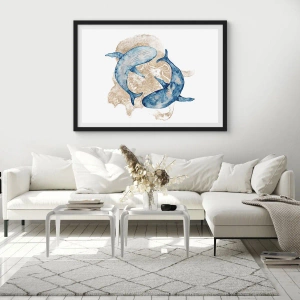 • Delfine, Abstrakt, Kunst, Für Kinder, Nautik, Pastell, Tiere, Für das Büro, für das Arbeitszimmer, für das Esszimmer, für das Kinderzimmer, für den Flur, für das Wohnzimmer, für das Schlafzimmer, Weiß, Blau, Grau, Quadrat