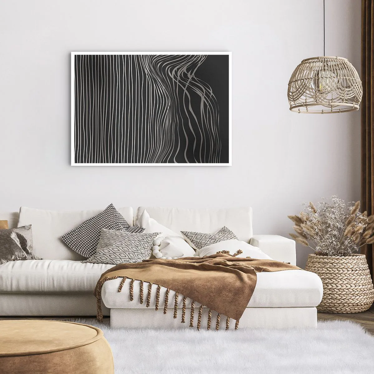 Poster - Weiße Linien auf dunkelgrauem Hintergrund in abstrakter Anordnung - 100x70cm - Rhythmus und Akzent - Moderne Wanddekoration für Wohnzimmer und Schlafzimmer ARTTOR