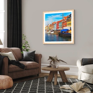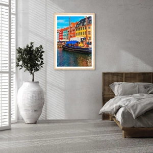 Poster in einem Rahmen aus heller Eiche - Fröhlicher Kai - 70x100 cm