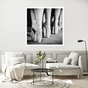 Poster - Schwarz-Weiß-Aufnahme der Ballettschuhe einer Tänzerin - 100x70cm - Gemeinsam, leicht - Moderne Wanddekoration für Wohnzimmer und Schlafzimmer ARTTOR