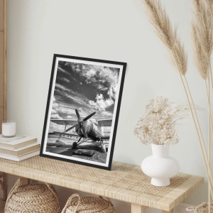 • Flugzeug, Luftfahrt, Schwarzweiß, Schwarz und Weiß, Flugzeuge, Vintage und Retro, Für das Büro, für das Arbeitszimmer, für das Esszimmer, für den Flur, für das Wohnzimmer, für das Schlafzimmer Grau, Schwarz und Weiß, Vertikal