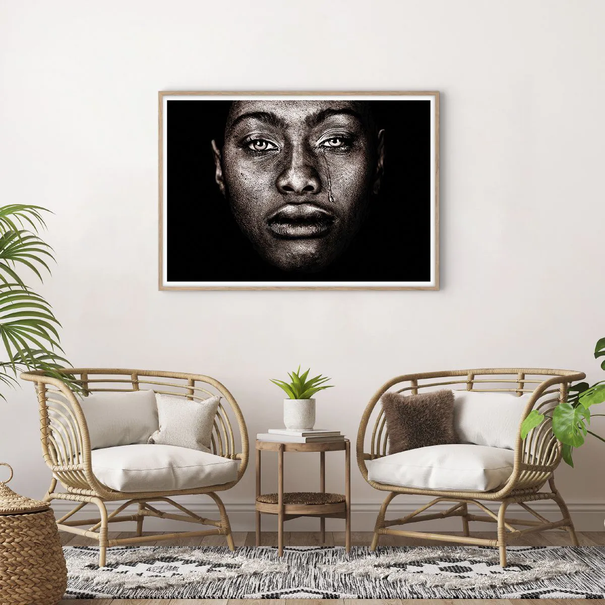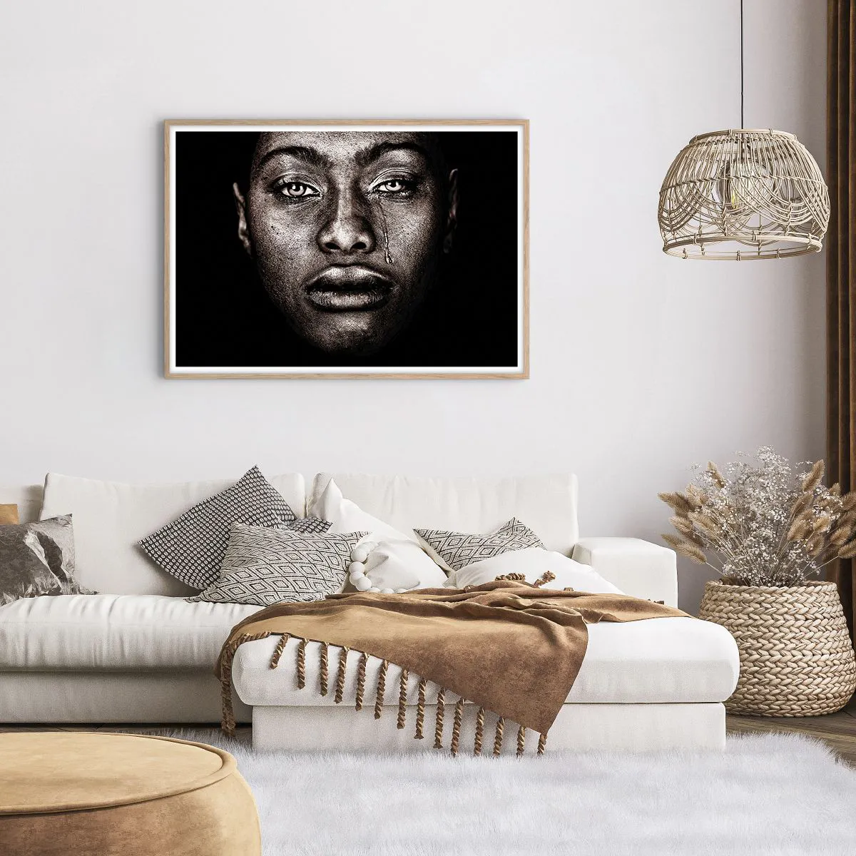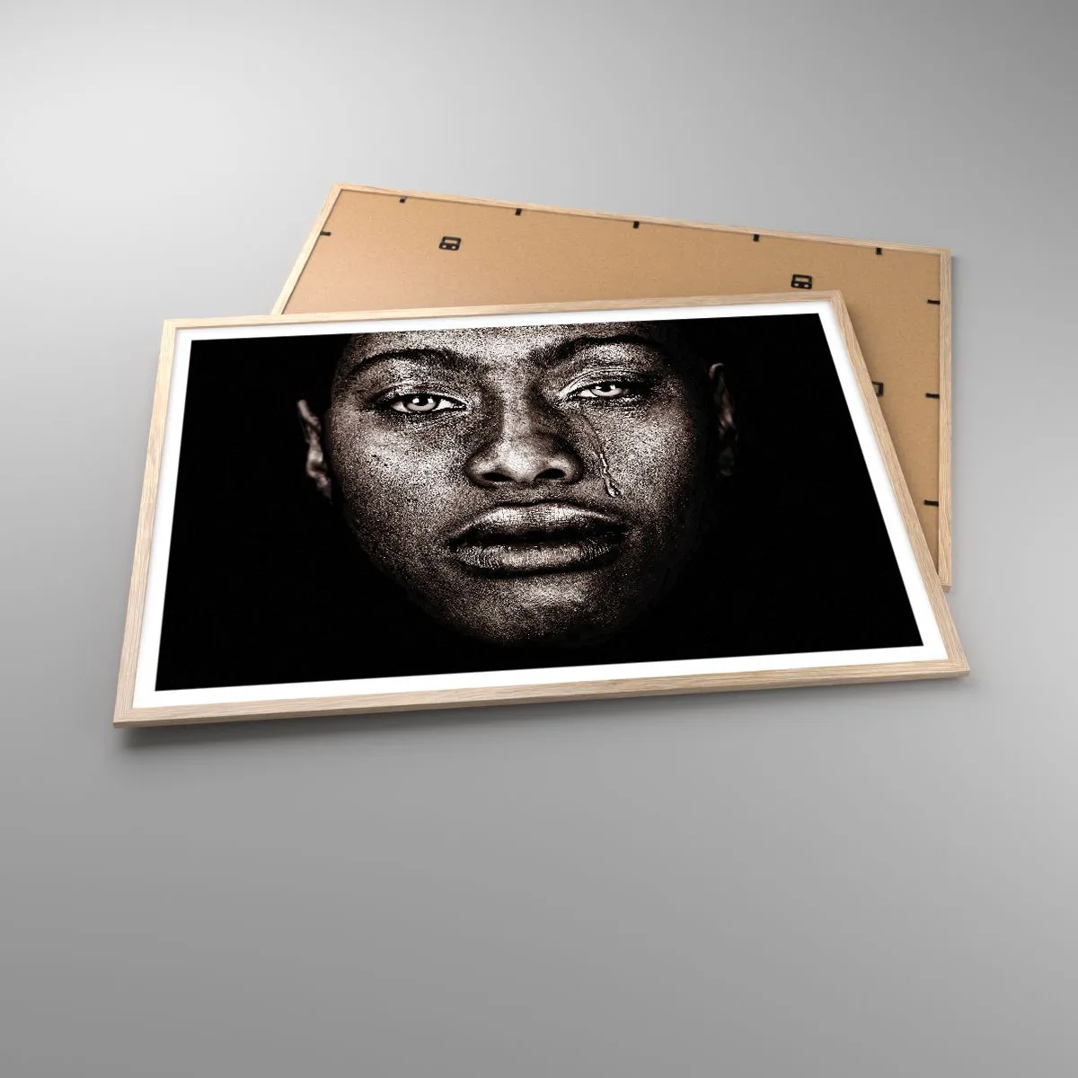 Poster in einem Rahmen aus heller Eiche - Eine Träne - 100x70 cm