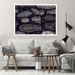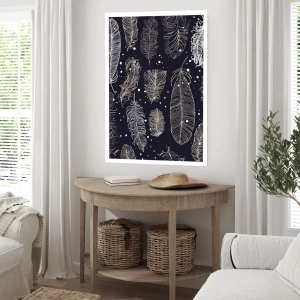 • Vogelfeder, Kunstwerk, Kunst, Andere, Für das Büro, für das Arbeitszimmer, für das Esszimmer, für den Flur, für das Wohnzimmer, für das Schlafzimmer, Schwarz, Horizontal