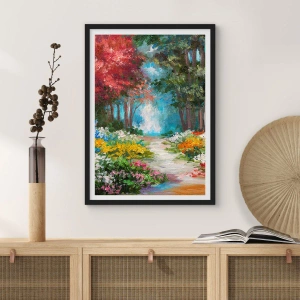 Poster in einem schwarzem Rahmen - Waldgarten, Blumenwald - 91x61 cm