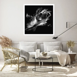 • Dieses Poster zeigt eine dynamische Tänzerin in Bewegung vor schwarzem Hintergrund. Der markante Schwarz-Weiß-Kontrast und der elegante Minimalismus machen es zu einem idealen Dekorationselement für moderne Innenräume.