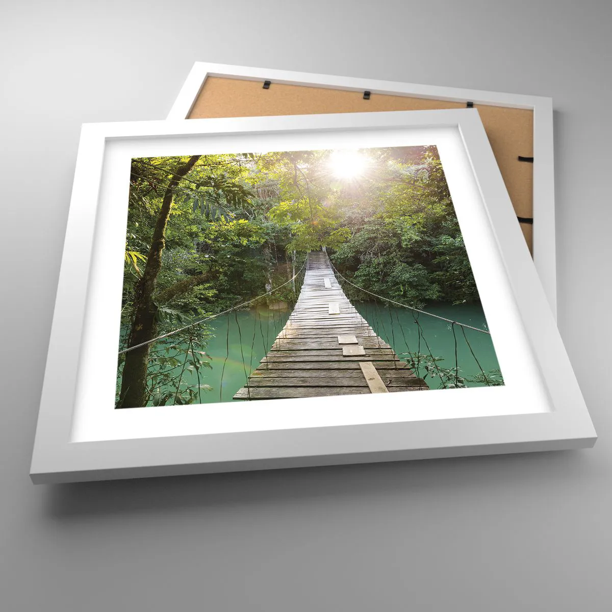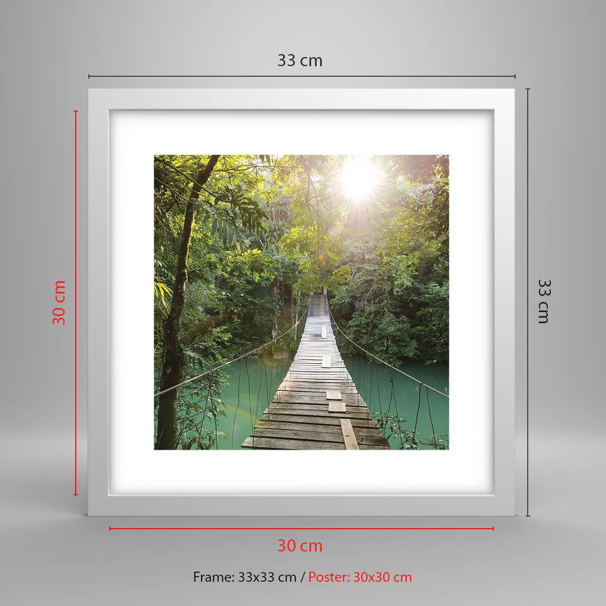 Poster in einem weißen Rahmen - Über das azurblaue Wasser zum azurblauen Wald - 30x30 cm