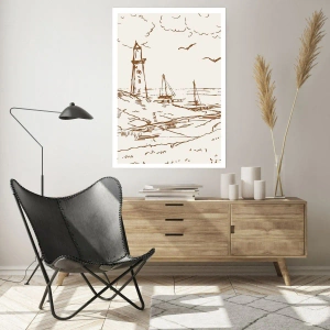 Poster - Leuchtturm mit Booten und Vögeln - 50x70cm - Ein Überblick über die Erinnerungen an den Sommer - Moderne Wanddekoration für Wohnzimmer und Schlafzimmer ARTTOR