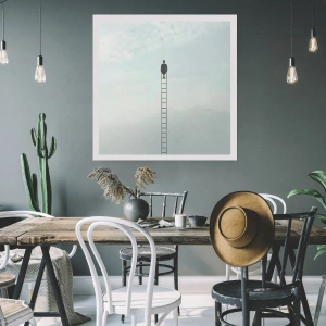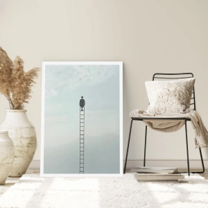 Poster - Mann auf einer Leiter, der in den Himmel schaut - 50x70cm - Erhebe dich darüber! - Moderne Wanddekoration für Wohnzimmer und Schlafzimmer ARTTOR