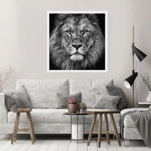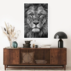 Poster - Schwarz-Weiß-Porträt eines majestätischen Löwen - 50x70cm - Im Krönungsgewand - Moderne Wanddekoration für Wohnzimmer und Schlafzimmer ARTTOR