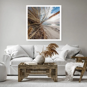Poster - Strand mit Blick aufs Meer und Gras in der Sonne - 50x70cm - Ein Treffen der Elemente der Natur - Moderne Wanddekoration für Wohnzimmer und Schlafzimmer ARTTOR